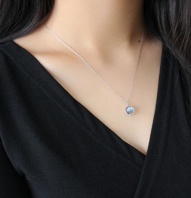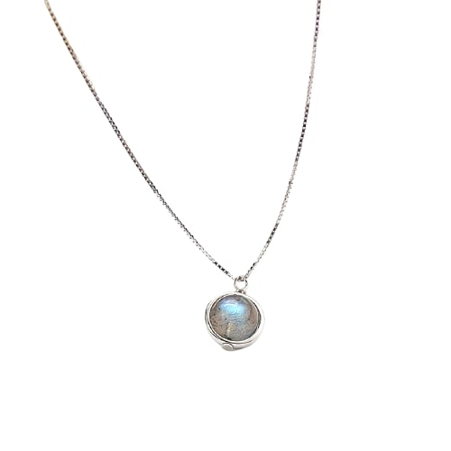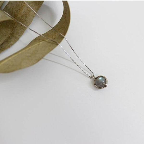 Pendentif Perle Labradorite avec Chaîne Argent Blanc