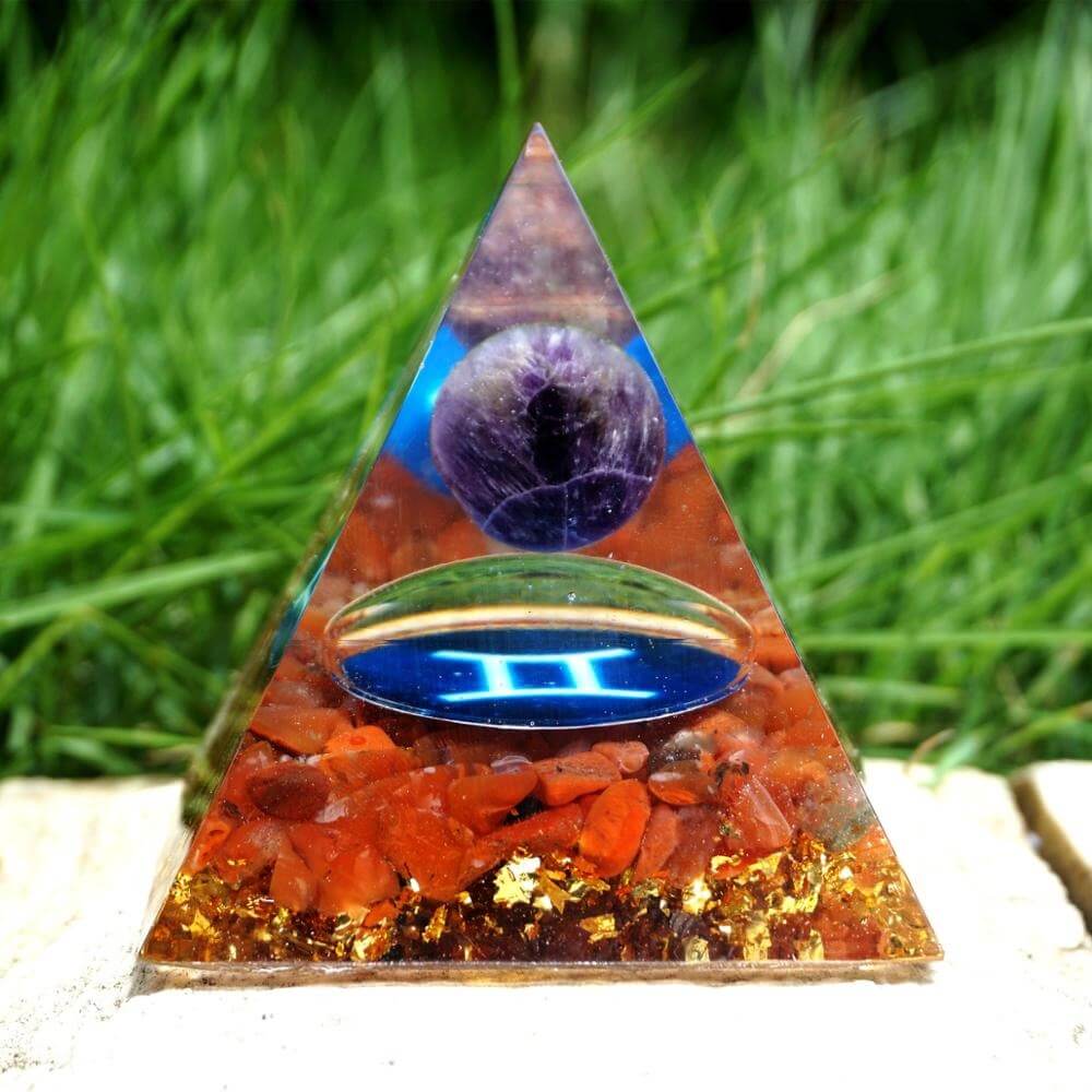 Pyramide Orgonite du Zodiaque Améthyste et Agate Rouge - Gémeaux
