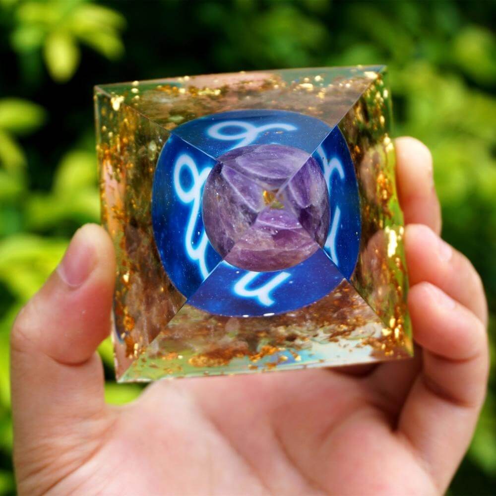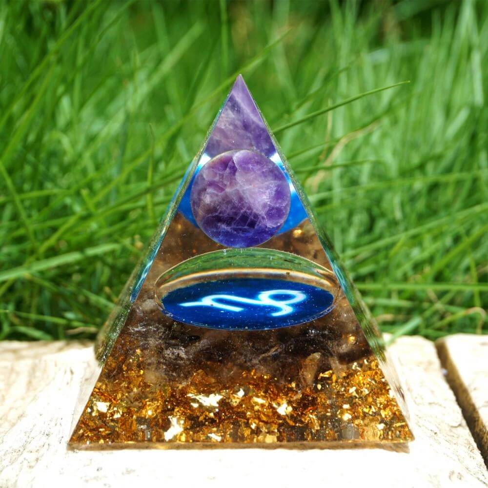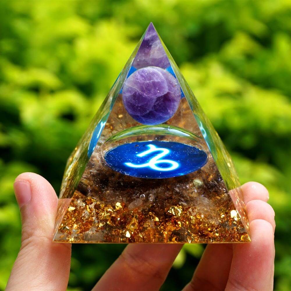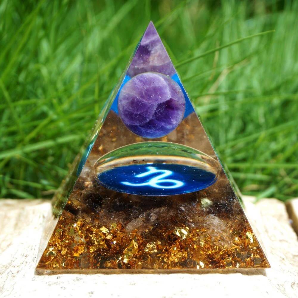 Pyramide Orgonite du Zodiaque Améthyste et Quartz Fumé - Capricorne