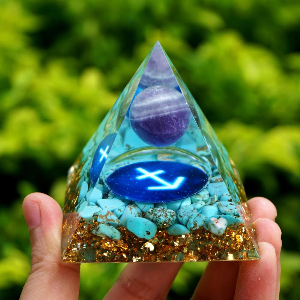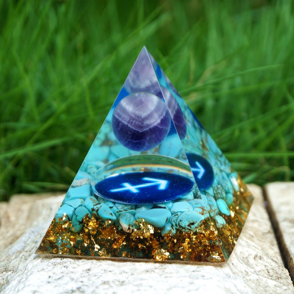 Pyramide Orgonite du Zodiaque Améthyste et Turquoise - Sagittaire