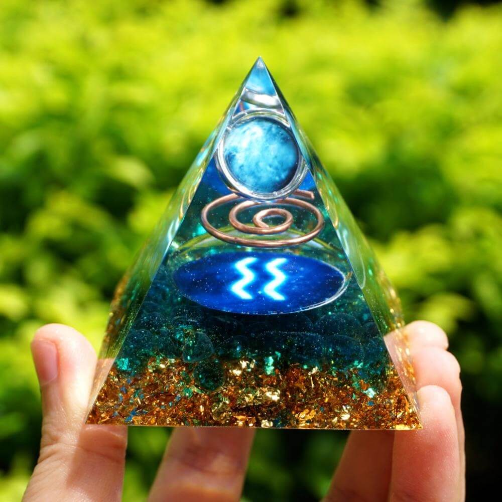 Pyramide Orgonite du Zodiaque Quartz Bleu - Verseau