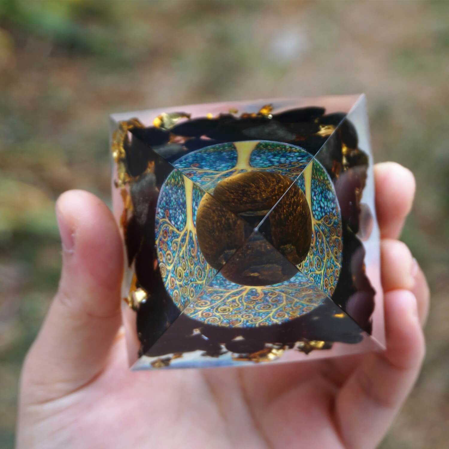 Pyramide Orgonite Obsidienne et Oeil de Tigre - Renaissance