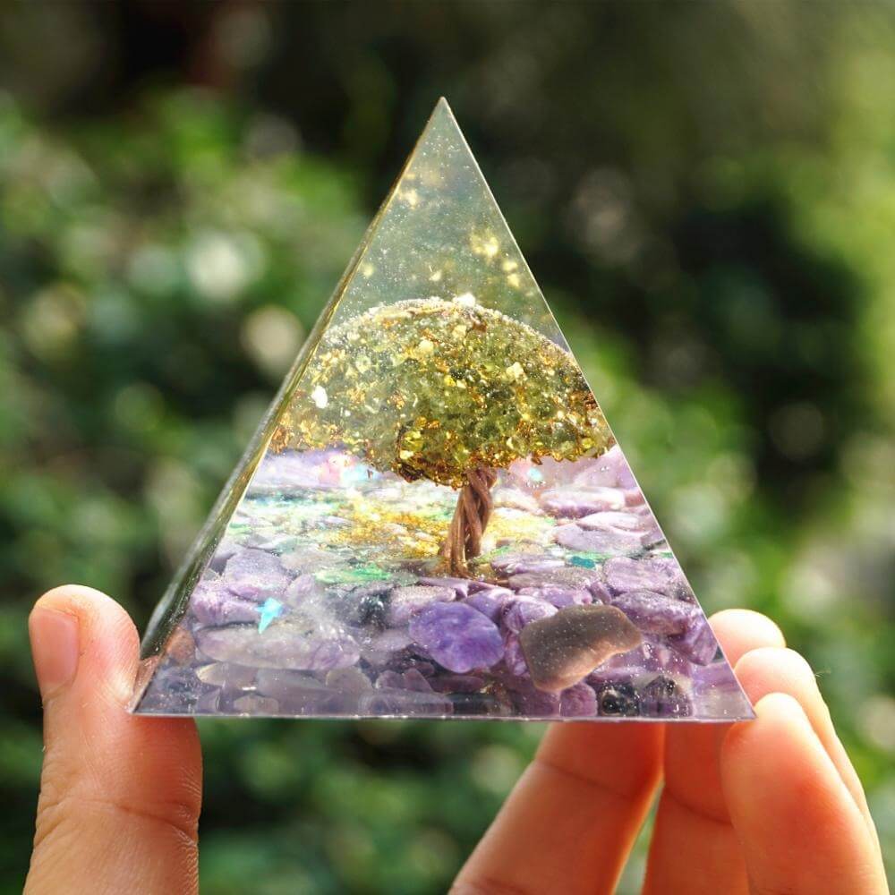 Pyramide Orgonite Charoite et Péridot - Arbre de Vie Renaissant