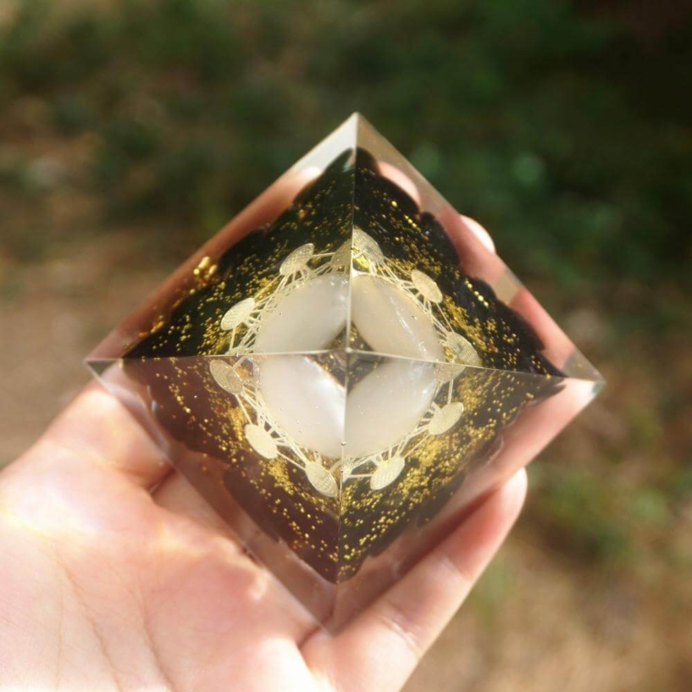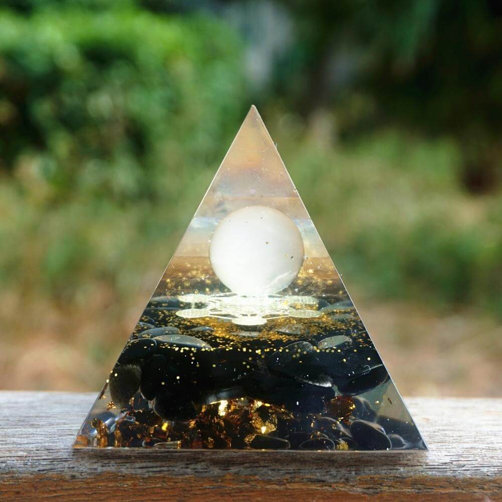 Pyramide Orgonite Quartz Rose et Obsidienne - Paix et Lumière